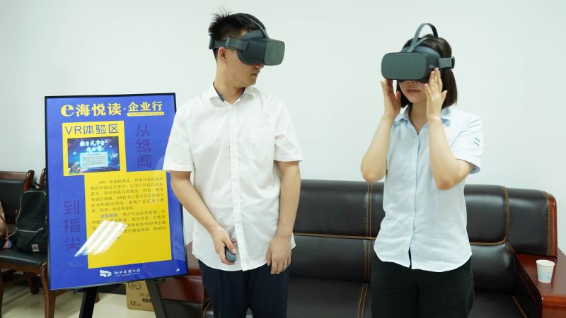 為了豐富資源服務(wù)模式,本次服務(wù)包括數(shù)據(jù)庫(kù)推介、VR沉浸體驗(yàn)、游戲互動(dòng)、圖書暢讀及電子借閱證辦理等。在活動(dòng)現(xiàn)場(chǎng),企業(yè)職工不僅可以通過(guò)VR眼鏡帶來(lái)的虛擬現(xiàn)實(shí)技術(shù),直觀感受到另類讀法的趣味性;還能在輕松愉快的氛圍中參與“碼上猜書”等互動(dòng)游戲,體驗(yàn)到移動(dòng)閱讀的高效;更有楚天云遞工作人員現(xiàn)場(chǎng)指導(dǎo)大家操作選書下單,享受足不出戶借閱圖書的便利。此外,活動(dòng)還專設(shè)了圖書暢讀區(qū),精選近百本近期大熱的紙質(zhì)圖書,供大家自取取閱,從紙間到指尖,將不同閱讀方式進(jìn)行展示與呼應(yīng),喚起閱讀帶來(lái)的樂(lè)趣與欣喜。