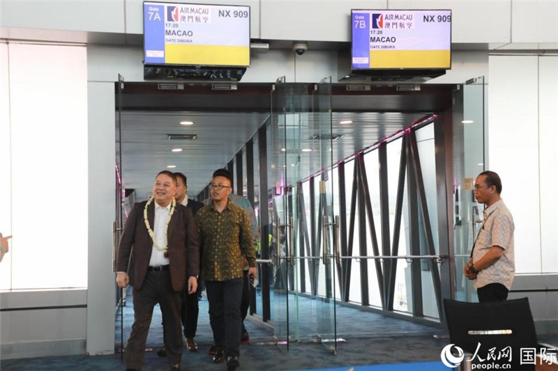 搭乘澳門航空首班澳門至雅加達航班的乘客抵達雅加達蘇加諾-哈達國際機場。人民網(wǎng)記者 曹師韻攝