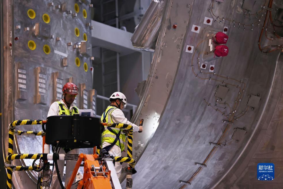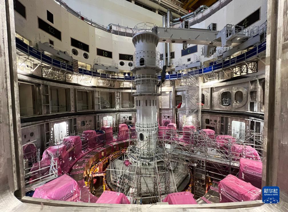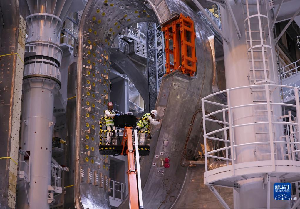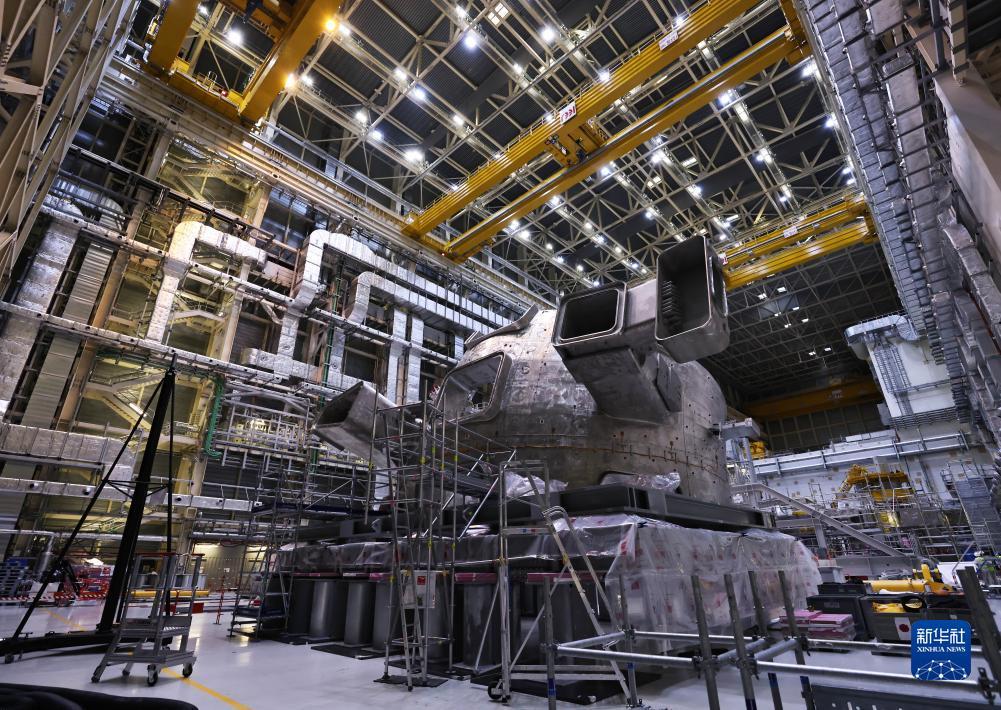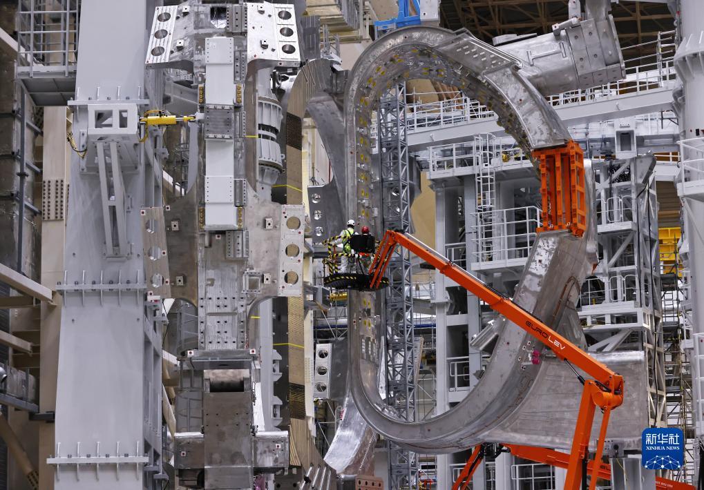 這是11月23日在位于法國圣保羅-萊迪朗斯的國際熱核聚變實驗反應堆(ITER)建設現(xiàn)場拍攝的安裝中的托卡馬克裝置。新華社記者 高靜 攝
