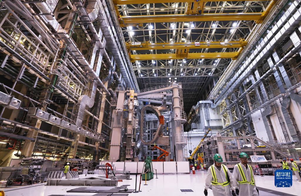 11月23日,工作人員在位于法國圣保羅-萊迪朗斯的國際熱核聚變實驗反應堆(ITER)的預組裝大廳里忙碌。新華社記者 高靜 攝