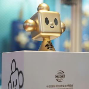11月29日在鏈博會(huì)文創(chuàng)小店拍攝的“鏈氪”文創(chuàng)產(chǎn)品?!版滊础笔鞘讓弥袊?guó)國(guó)際供應(yīng)鏈促進(jìn)博覽會(huì)的吉祥物。新華社記者 任超 攝