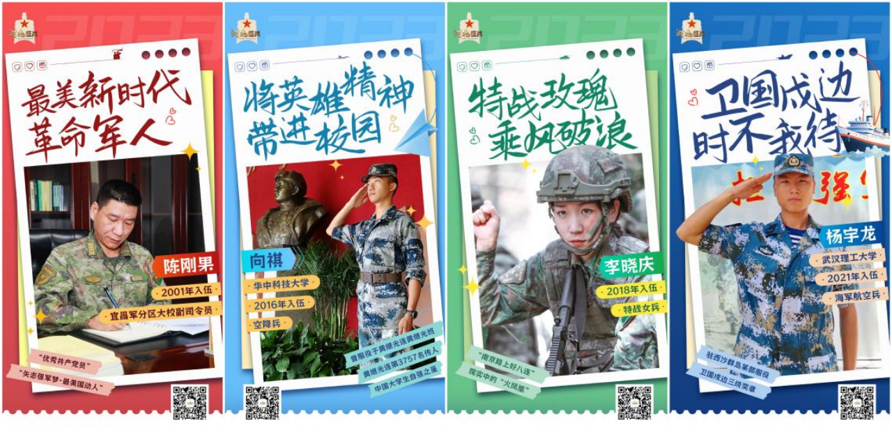 活動(dòng)將安排優(yōu)秀學(xué)子分享服役經(jīng)歷,講述在軍隊(duì)成長成才的故事,還有最新征兵政策解讀,本次活動(dòng)將在線上進(jìn)行同步直播,歡迎大家關(guān)注。