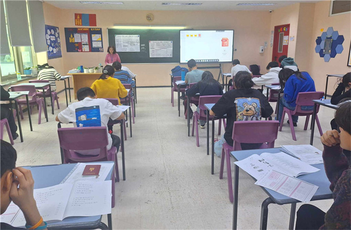 | 12月3日,HSK考試現(xiàn)場(chǎng)。蒙古國(guó)立教育大學(xué)孔子學(xué)院供圖 |