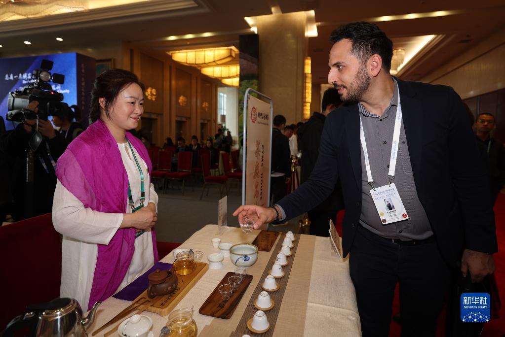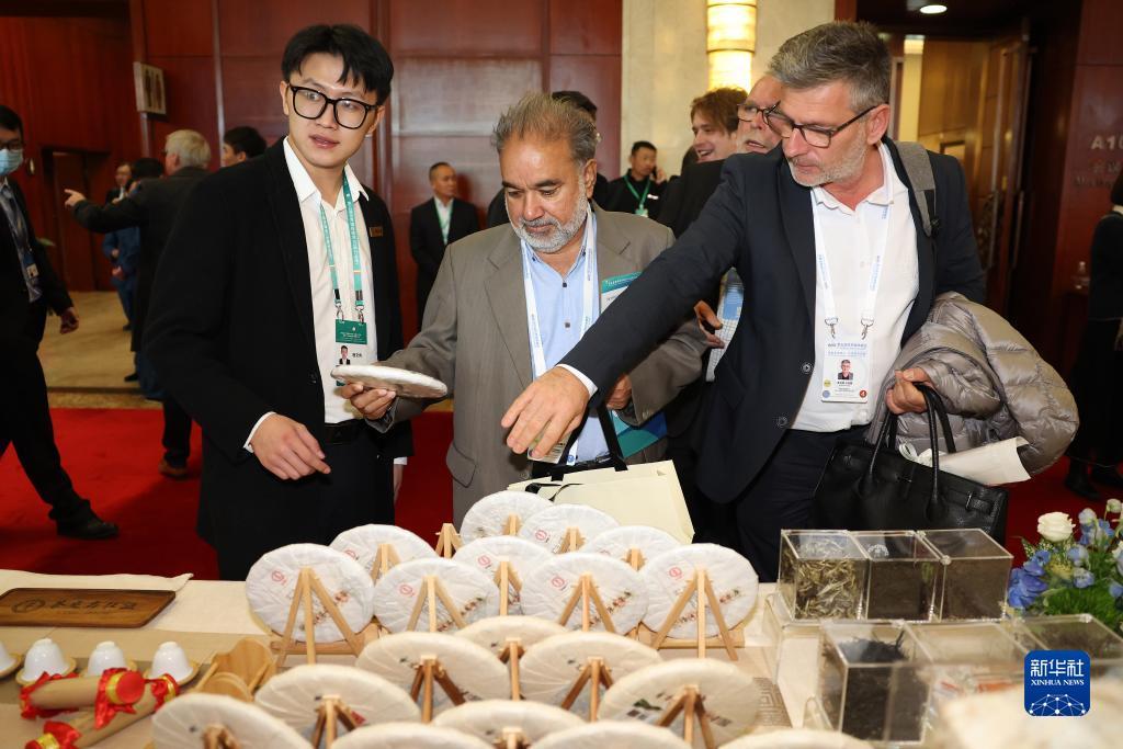 12月5日,在云南昆明參加第五屆世界媒體峰會(云南分會場)暨第二屆大象國際傳播論壇的參會代表了解云南普洱茶。