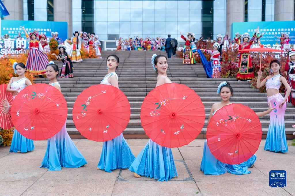 12月5日,演員在第五屆世界媒體峰會(云南分會場)暨第二屆大象國際傳播論壇開幕式前表演。
