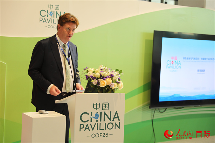 | 亞洲基礎(chǔ)設(shè)施投資銀行副行長艾德明在《聯(lián)合國氣候變化框架公約》第28次締約方大會(COP28)“綠色金融與氣候應(yīng)對:中國銀行業(yè)的角色與機(jī)遇”邊會上致辭。人民網(wǎng)記者 張志文攝 |