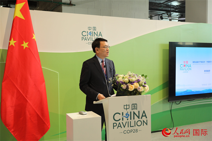 | 生態(tài)環(huán)境部副部長趙英民在《聯(lián)合國氣候變化框架公約》第28次締約方大會(COP28)“綠色金融與氣候應(yīng)對:中國銀行業(yè)的角色與機(jī)遇”邊會上致辭。人民網(wǎng)記者 張志文攝 |