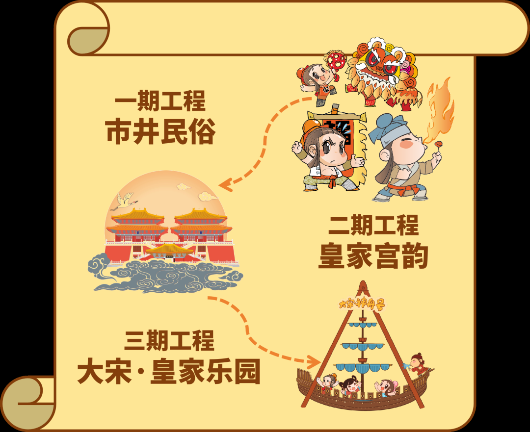 “骕骦千里”游樂項目,將打造全球最大的豪華轉馬設備,108人座以跳躍起伏為主的游樂坐騎,整體風格采用宋代的建筑元素,內設環(huán)繞千里江山圖的壯麗畫面,轉馬一邊繞中柱旋轉,一邊上下浮動,讓乘客仿佛乘坐在駿馬之上,奔跑在延綿千里的壯闊江山中!