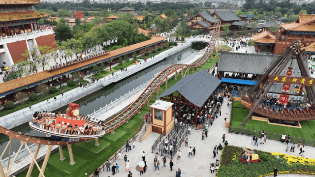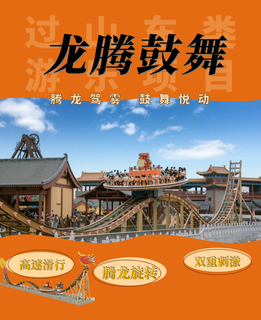 “龍騰鼓舞”游樂設施,增加了宋代擊鼓元素,伴隨音樂節(jié)奏,動感十足,讓游客擁有騰云駕霧的沉浸體驗,體驗高速滑行和舞動旋轉的雙重刺激。
