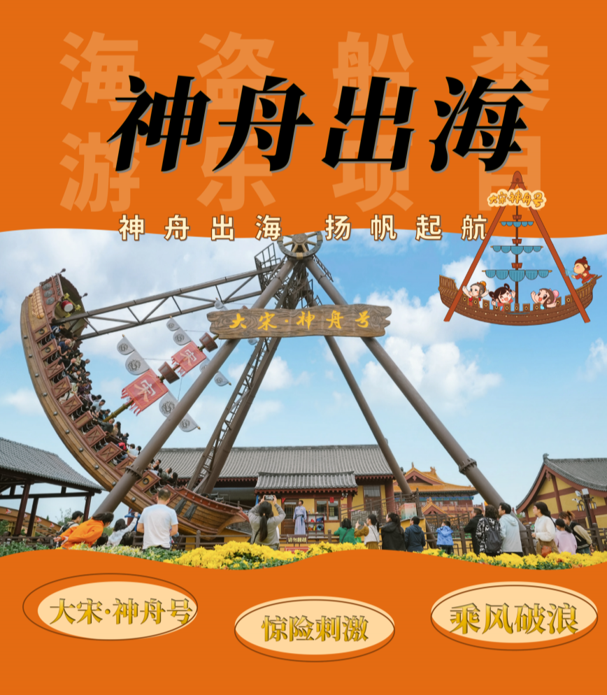 “神舟出?!庇螛讽椖繌驮舜笏喂俜绞钩汲鍪购M鈬业摹吧裰邸?,你可乘坐“大宋·神舟號”與大宋使臣一起揚帆起航、乘風破浪!