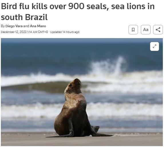 報道稱,高致病性禽流感病毒也在其他動物種群中傳播,包括海鳥、海豹和海獅等動物。巴西當(dāng)局收集了海灘上死去的鼠海豚和企鵝的尸體樣本,但檢測結(jié)果尚未得出。