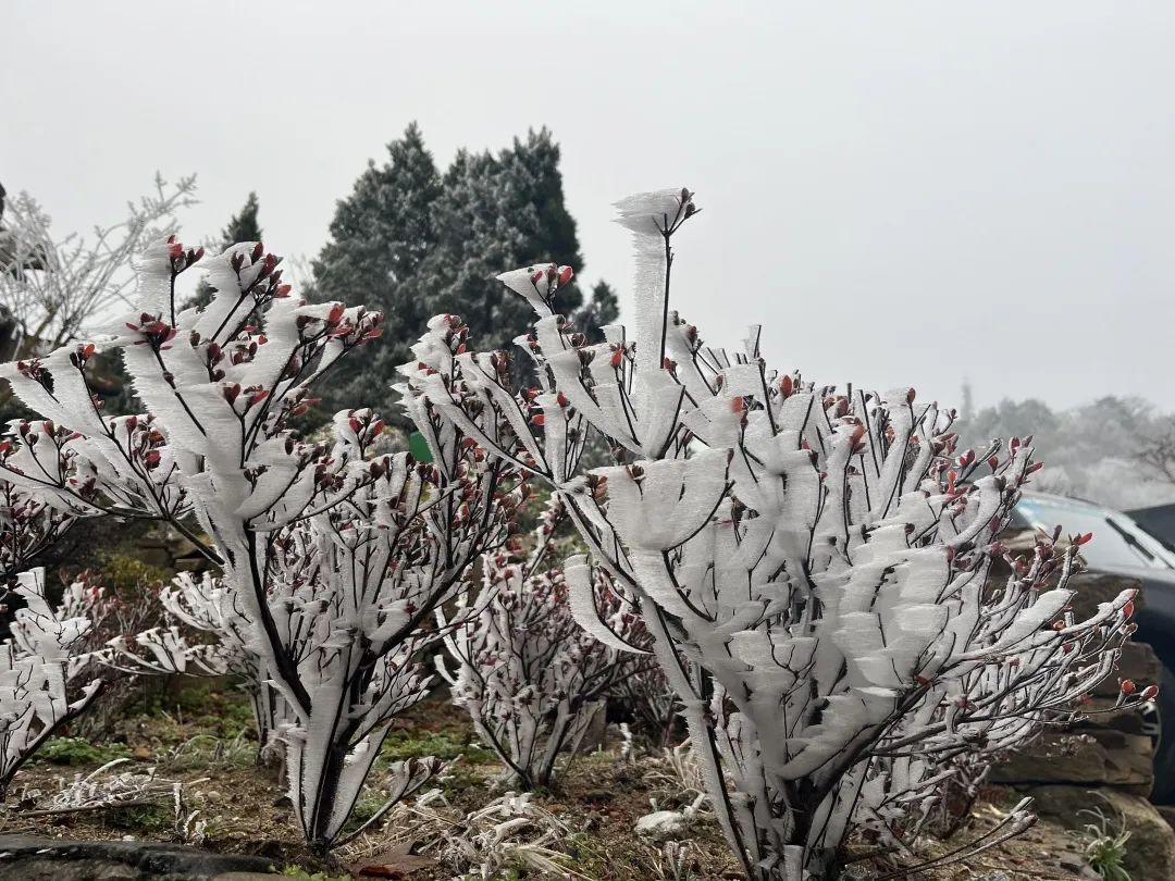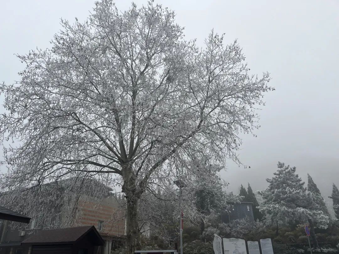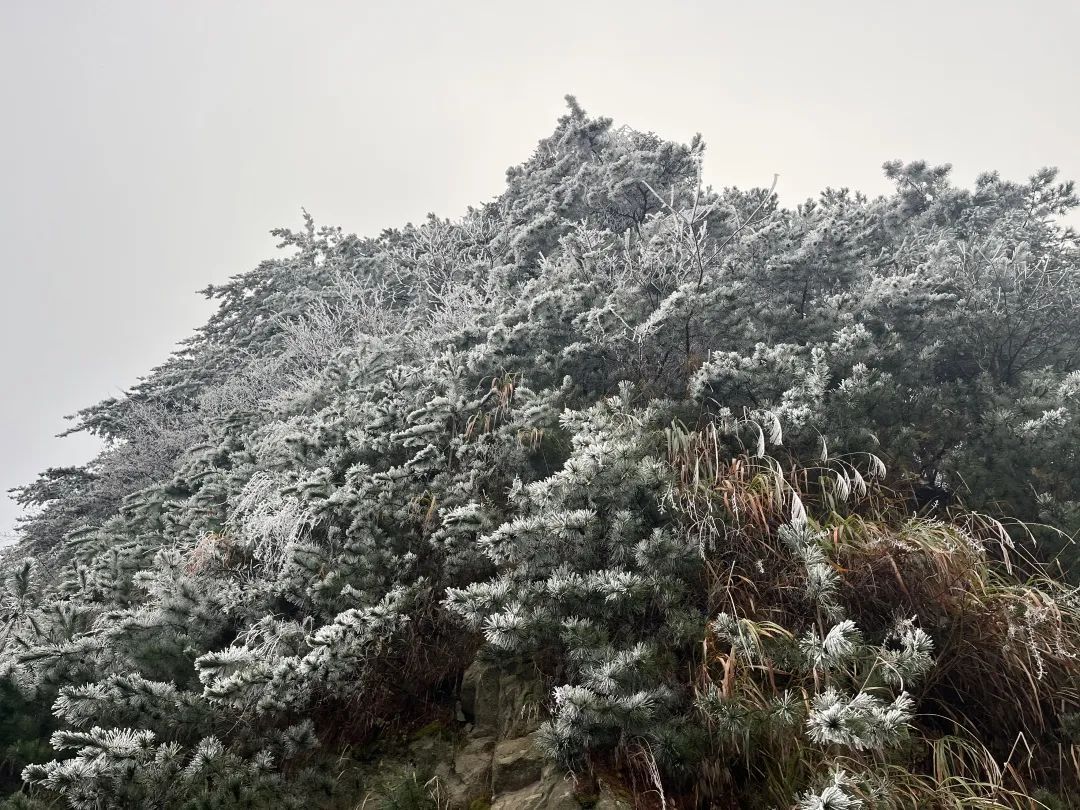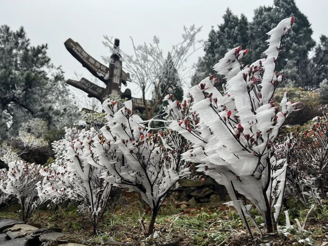 荊楚網(wǎng)(湖北日?qǐng)?bào)網(wǎng))訊(通訊員尹杰)濃霜中夜零,千林成霧凇。隨著氣溫的下降,龜峰山景區(qū)現(xiàn)霧凇奇觀。冰雕玉砌、晶瑩閃爍,霧凇綴滿枝頭,云霧籠罩下開(kāi)啟仙境模式。