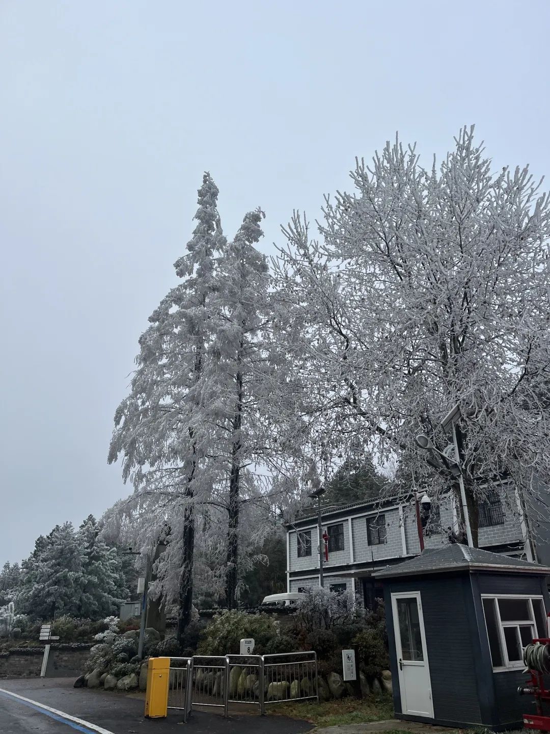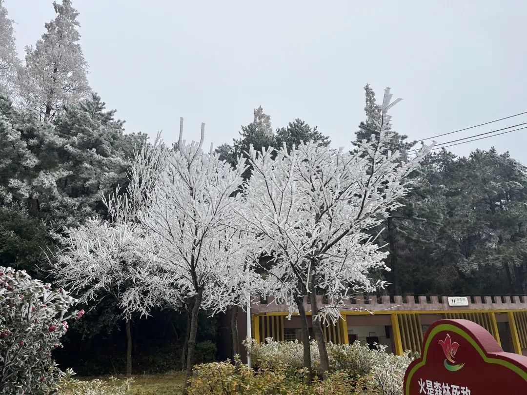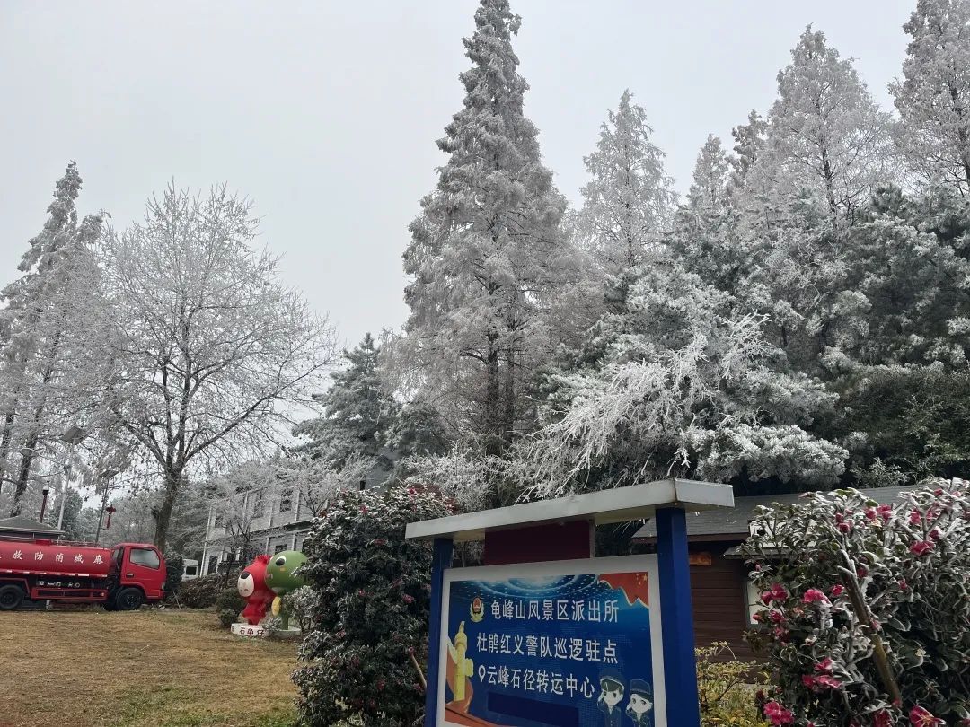 荊楚網(wǎng)(湖北日?qǐng)?bào)網(wǎng))訊(通訊員尹杰)濃霜中夜零,千林成霧凇。隨著氣溫的下降,龜峰山景區(qū)現(xiàn)霧凇奇觀。冰雕玉砌、晶瑩閃爍,霧凇綴滿枝頭,云霧籠罩下開(kāi)啟仙境模式。