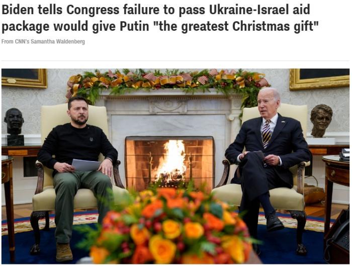 另據(jù)美國有線電視新聞網(wǎng)(CNN)報道,當(dāng)天下午,澤連斯基前往白宮會見拜登,雙方在會談中都強(qiáng)調(diào)了美國對烏援助的緊迫性。拜登稱,如果美國會未能通過對烏援助計劃,這將是“送給俄總統(tǒng)普京最好的圣誕禮物”。
