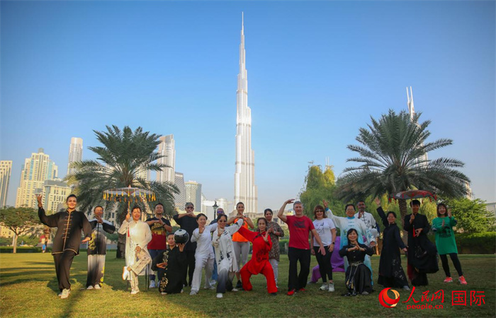 人民網(wǎng)迪拜12月13日電 (記者管克江)周日清晨,世界最高塔——迪拜哈利法塔下的草坪上,一群身穿中式練功服的人們排成隊列,伴著舒緩的古典民樂,起勢、野馬分鬃、白鶴亮翅……近年來,每周練習(xí)太極拳已經(jīng)成為許多迪拜民眾的愛好。