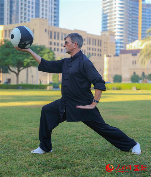 羅伯特在練習(xí)太極球。人民網(wǎng) 塔里克·易卜拉欣攝