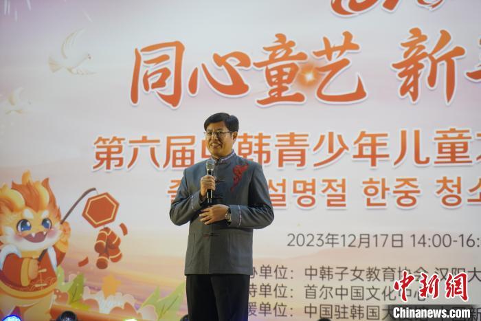 圖為中國駐韓國大使館領(lǐng)僑處公參兼總領(lǐng)事鐘洪糯致辭。中新社記者 劉旭 攝