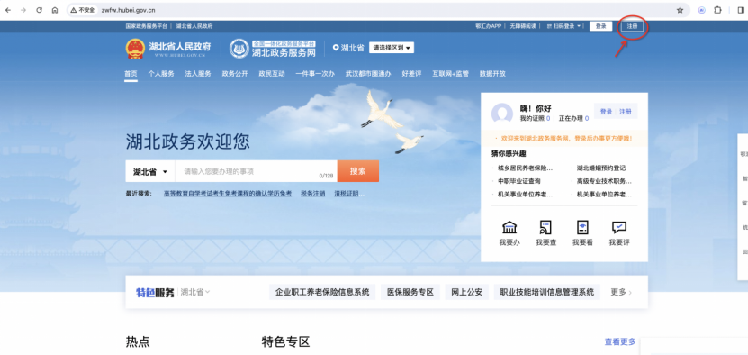 如未注冊(cè)“個(gè)人統(tǒng)一身份認(rèn)證賬號(hào)”,需訪問(wèn)“湖北政務(wù)服務(wù)網(wǎng)(http://zwfw.hubei.gov.cn)”或下載“鄂匯辦APP”,先行注冊(cè)。