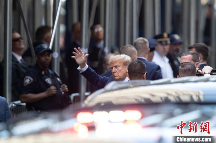當?shù)貢r間4月4日,美國前總統(tǒng)特朗普抵紐約曼哈頓刑事法院就“封口費”案接受提審。中新社記者 廖攀 攝