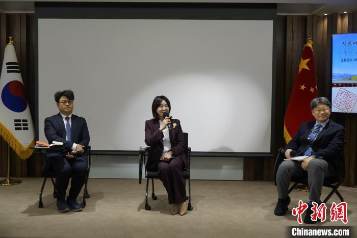 圖為新書作者曲歡(中)與金玟圭(左)同在場嘉賓交流。中新社記者 劉旭 攝