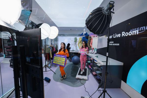 2023年11月23日,在浙江杭州舉行的第二屆全球數(shù)字貿(mào)易博覽會絲路電商館,跨境電商進行直播銷售。新華社記者徐昱攝