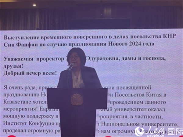中國(guó)駐哈薩克斯坦大使館公使銜參贊邢芳芳致辭。人民網(wǎng)記者李強(qiáng)攝