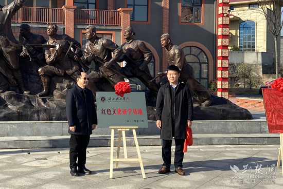 當天上午,湖北理工學(xué)院黨委副書記李金奇和大冶市委宣傳部副部長劉玉強,共同為湖北理工學(xué)院紅色文化研學(xué)基地揭牌。湖北理工學(xué)院馬克思主義學(xué)院書記、院長吳鳳庭和大箕鋪鎮(zhèn)黨委書記柯夢兵,共同為湖北理工學(xué)院“大思政課”教育教學(xué)基地揭牌。