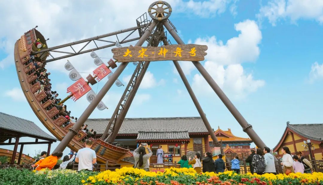 “龍騰鼓舞”游樂設(shè)施,增加了宋代擊鼓元素,伴隨音樂節(jié)奏,動感十足,讓游客擁有騰云駕霧的沉浸體驗(yàn)。