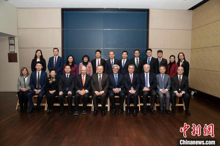 當(dāng)?shù)貢r(shí)間1月8日,中共中央對(duì)外聯(lián)絡(luò)部部長(zhǎng)劉建超在紐約出席中美1.5軌對(duì)話框架下專題座談。圖為座談后合影?!≈行律缬浾?廖攀 攝