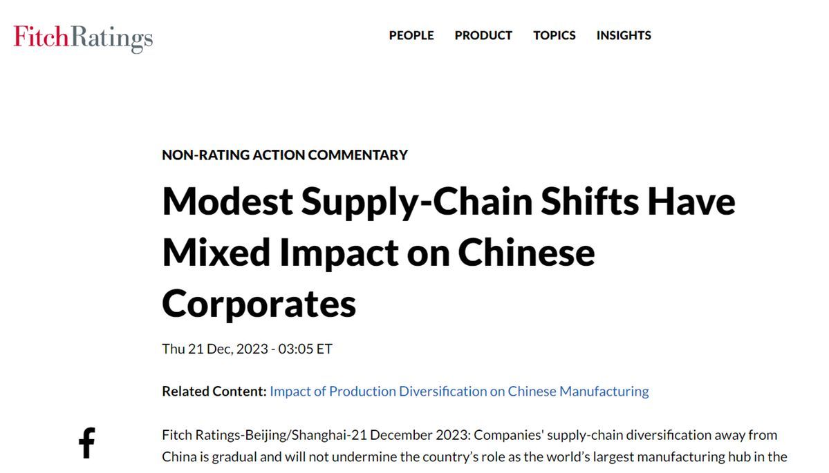 中國日報網(wǎng)1月8日電 美國《華爾街日報》網(wǎng)站報道稱,最新研究揭示了美西方針對中國供應鏈實施“去風險化”政策的實際效果。初步結論令人擔憂:旨在打造彈性供應鏈的相關措施,可能是虛幻的。結果將導致全球供應鏈變得更為復雜,反而會產(chǎn)生新的風險。