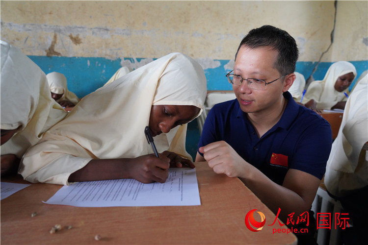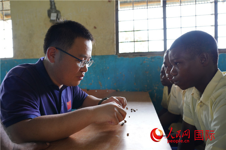 | 中國專家在指導學生填寫調查問卷。人民網(wǎng)記者 黃煒鑫攝 |