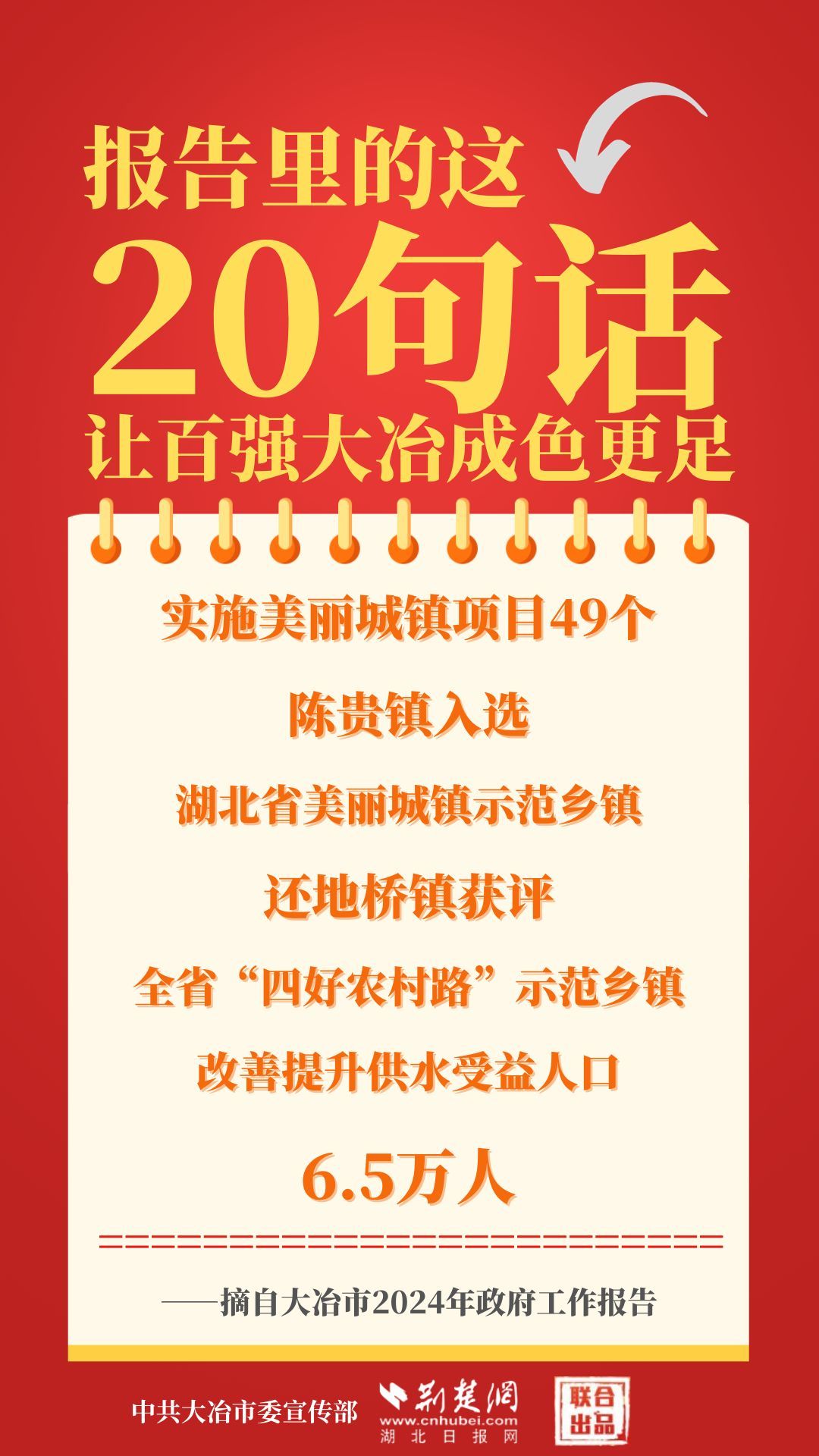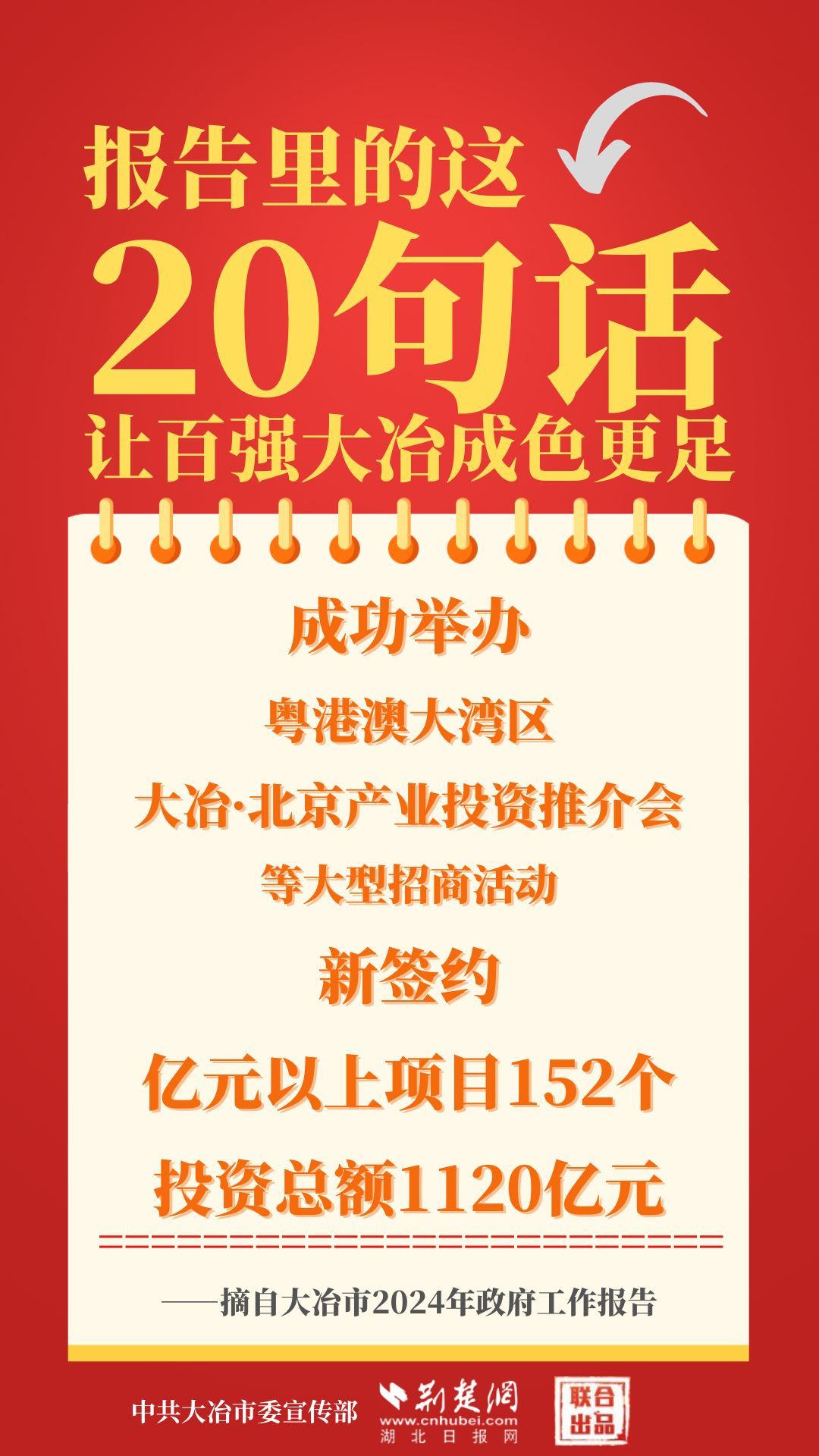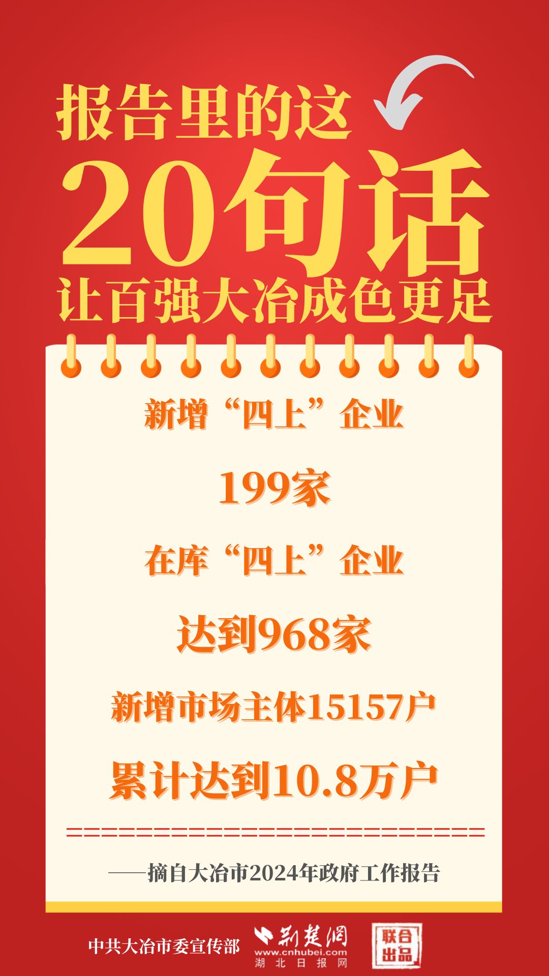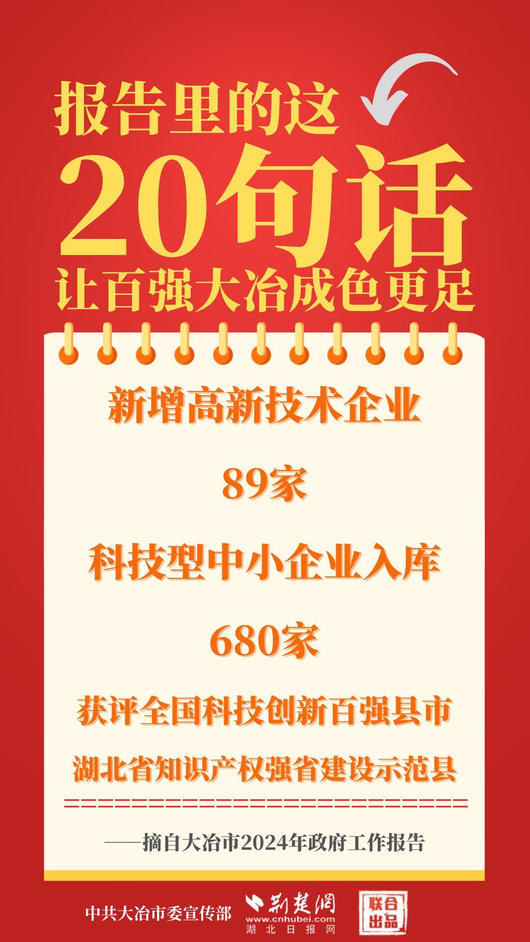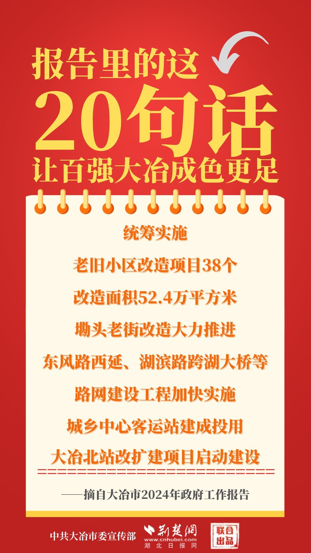1月12日,大冶市第七屆人民代表大會(huì)第四次會(huì)議開(kāi)幕,大冶市委副書記、市長(zhǎng)孫輒作政府工作報(bào)告。報(bào)告里的這20句話,讓百?gòu)?qiáng)大冶成色更足。
