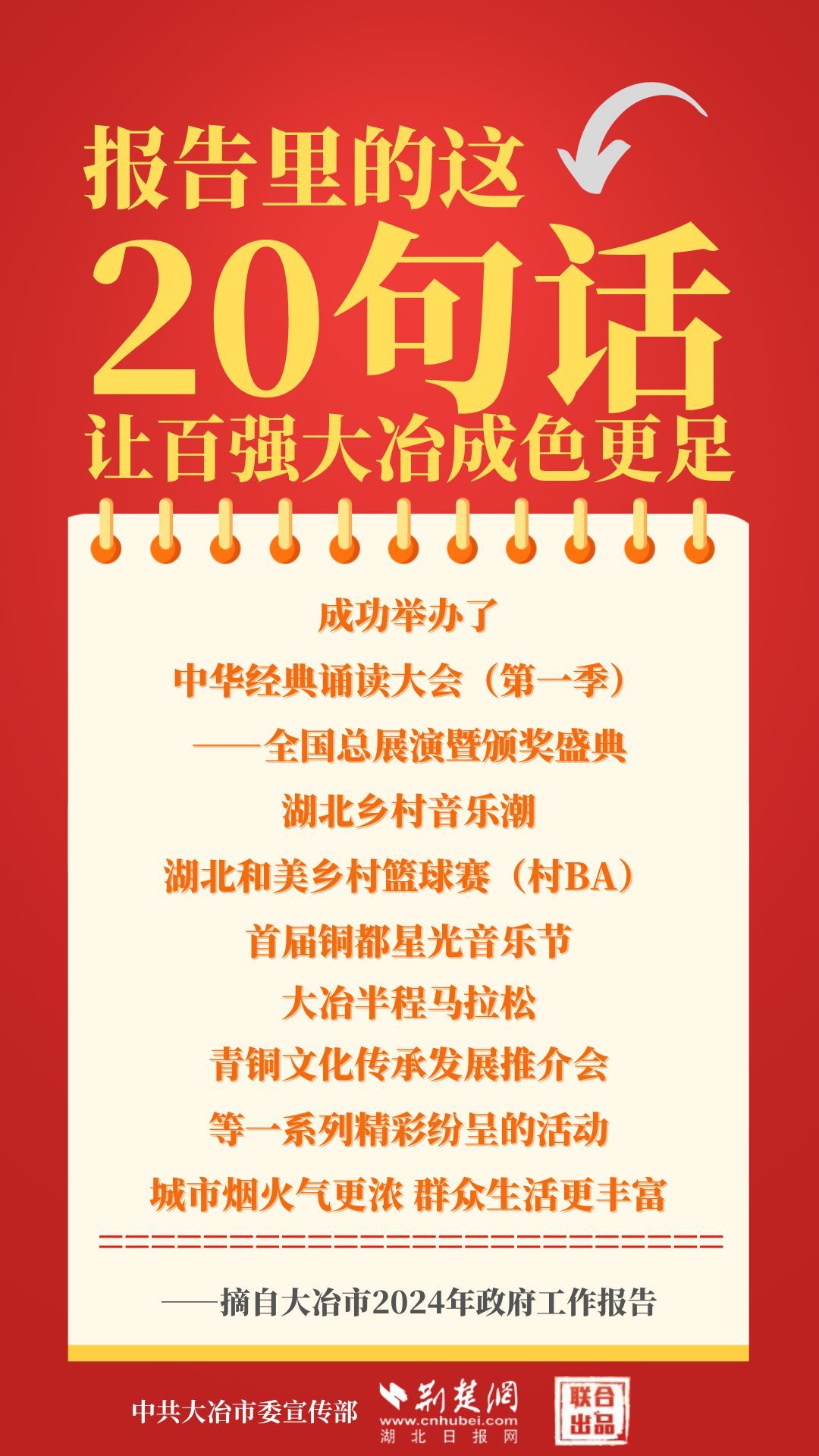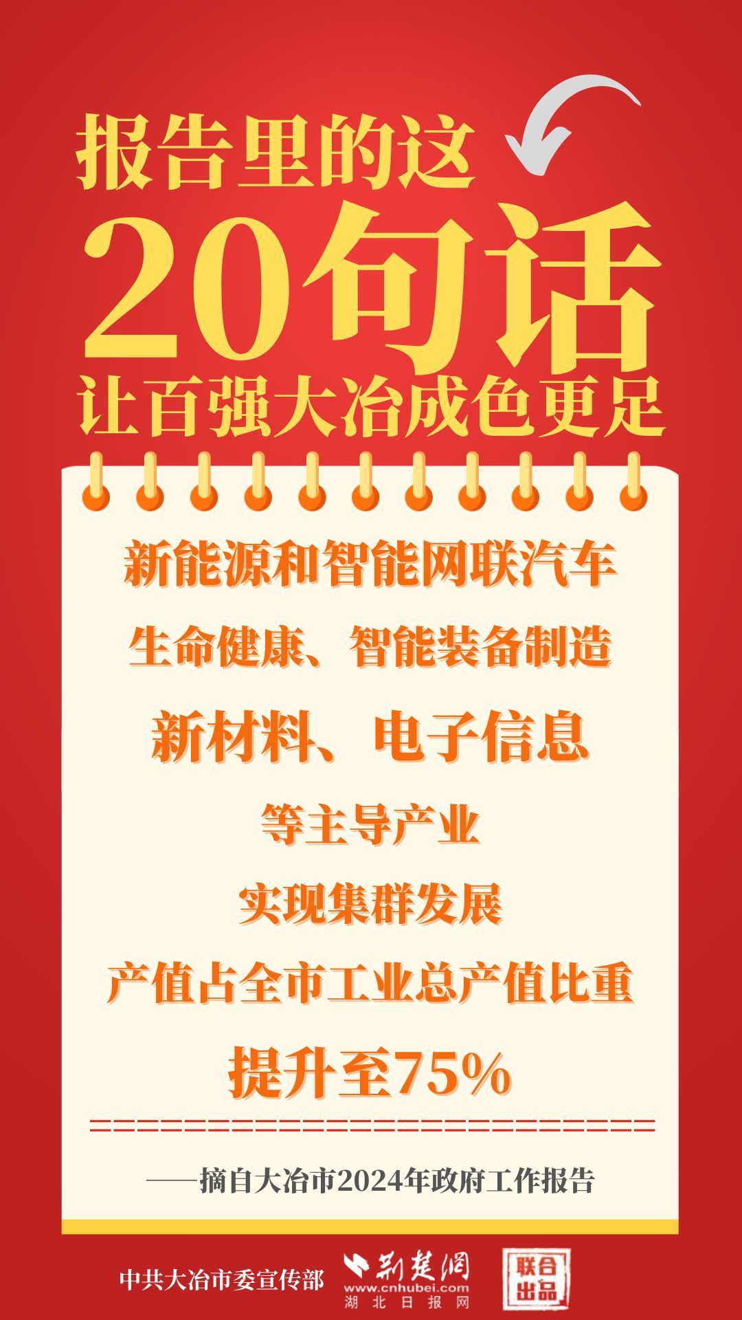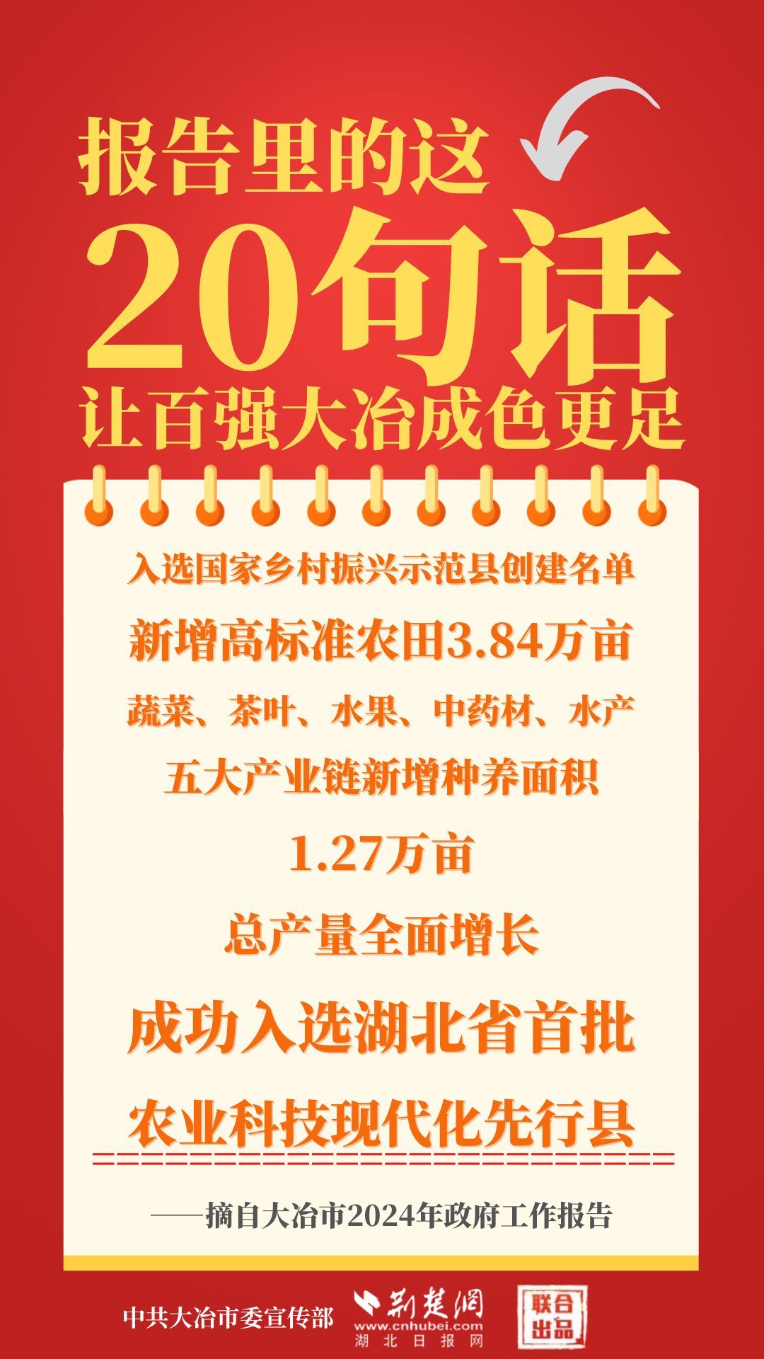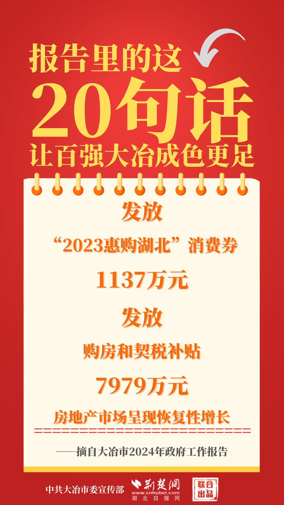 1月12日,大冶市第七屆人民代表大會(huì)第四次會(huì)議開(kāi)幕,大冶市委副書記、市長(zhǎng)孫輒作政府工作報(bào)告。報(bào)告里的這20句話,讓百?gòu)?qiáng)大冶成色更足。