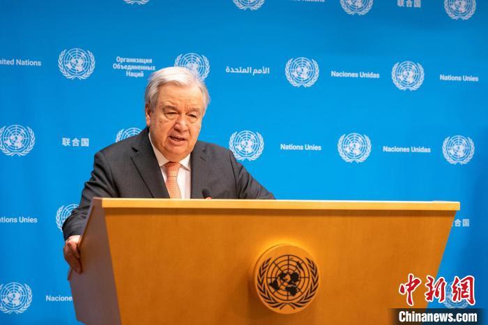 當(dāng)?shù)貢r(shí)間1月15日,聯(lián)合國(guó)秘書長(zhǎng)古特雷斯在紐約聯(lián)合國(guó)總部向媒體發(fā)表講話,再次呼吁立即在加沙地帶實(shí)現(xiàn)人道主義?;??!≈行律缬浾?王帆 攝