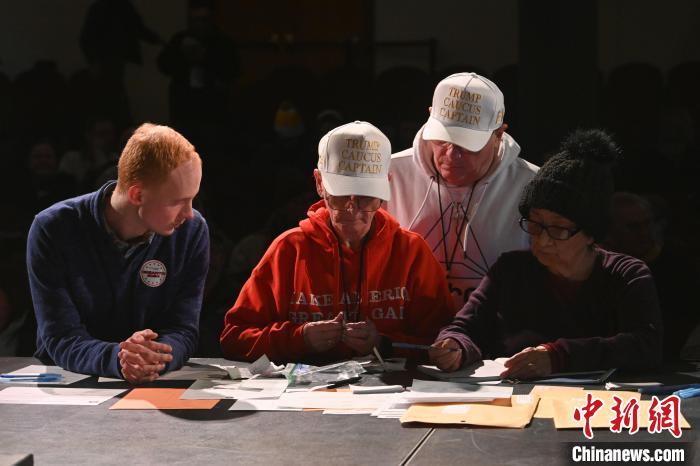 當(dāng)?shù)貢r(shí)間1月15日,美國2024大選艾奧瓦初選舉行。圖為共和黨得梅因57號(hào)選區(qū)黨團(tuán)會(huì)議統(tǒng)計(jì)選票。中新社記者 陳孟統(tǒng) 攝