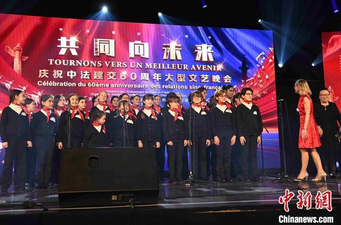 當(dāng)?shù)貢r間1月16日晚,以“共同向未來”為題的慶祝中法建交60周年大型文藝晚會在巴黎舉辦。圖為法國寶利聲童聲合唱團演唱歌曲。 中新社記者 李洋 攝