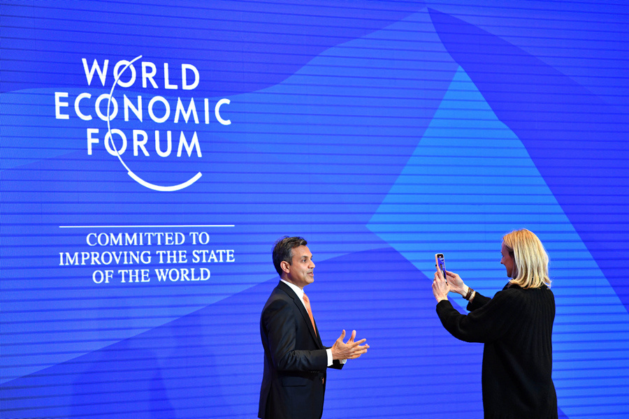 1月15日,在瑞士達(dá)沃斯,與會者參加世界經(jīng)濟(jì)論壇2024年年會。新華社記者連漪攝