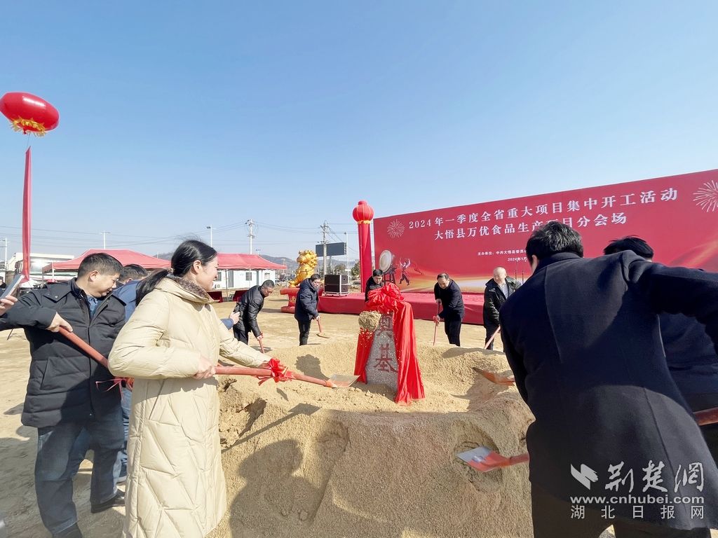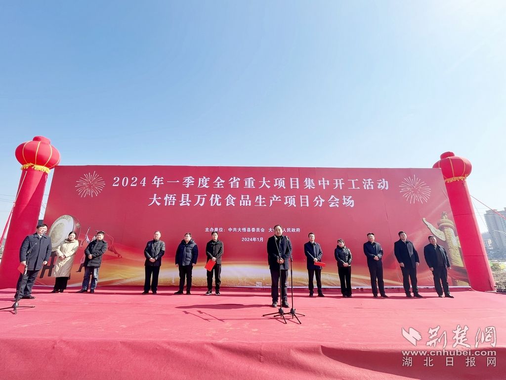 荊楚網(wǎng)(湖北日?qǐng)?bào)網(wǎng))訊(通訊員劉陽(yáng))爭(zhēng)先開(kāi)跑,奮力沖刺“開(kāi)門(mén)紅”。1月25日上午,陽(yáng)光明媚,暖意融融。2024年一季度全省重大項(xiàng)目集中開(kāi)工儀式大悟分會(huì)場(chǎng)在城關(guān)鎮(zhèn)樂(lè)沖精密智造產(chǎn)業(yè)園內(nèi)隆重舉行,萬(wàn)優(yōu)食品年產(chǎn)2萬(wàn)噸速凍面米制品項(xiàng)目動(dòng)工建設(shè)。