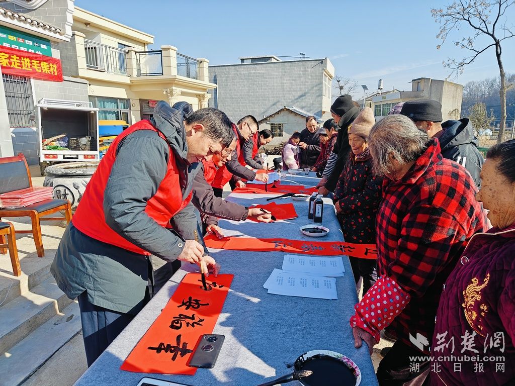 荊楚網(湖北日報網)訊(通訊員陳冬青)1月24日,大悟縣新城鎮(zhèn)毛集村在禮山田園開展“情暖毛集送祝福 揮毫潑墨寫春聯(lián)”志愿服務活動,營造濃厚節(jié)日氛圍。