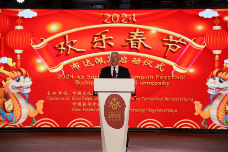龔韜表示,2024年是中國的龍年,也是中匈建交75周年。目前中匈關(guān)系正處于歷史最好時期,在兩國領(lǐng)導(dǎo)人戰(zhàn)略引領(lǐng)下,雙方政治互信不斷深化,“一帶一路”倡議同匈“向東開放”政策深度對接,各領(lǐng)域務(wù)實合作成果豐碩,人文交流亮點紛呈,成為不同社會制度、不同歷史文化、不同幅員人口國家之間友好交往的典范。今天的“歡樂春節(jié)”布達(dá)佩斯啟動儀式不僅代表著匈牙利中國龍年春節(jié)慶祝活動的開始,也將拉開慶祝中匈建交75周年各項活動的序幕。相信新的一年里,中匈人文紐帶更加緊密,友好氛圍更加濃厚,全面戰(zhàn)略伙伴關(guān)系邁上新臺階。