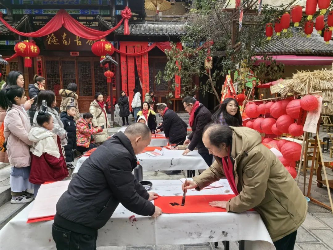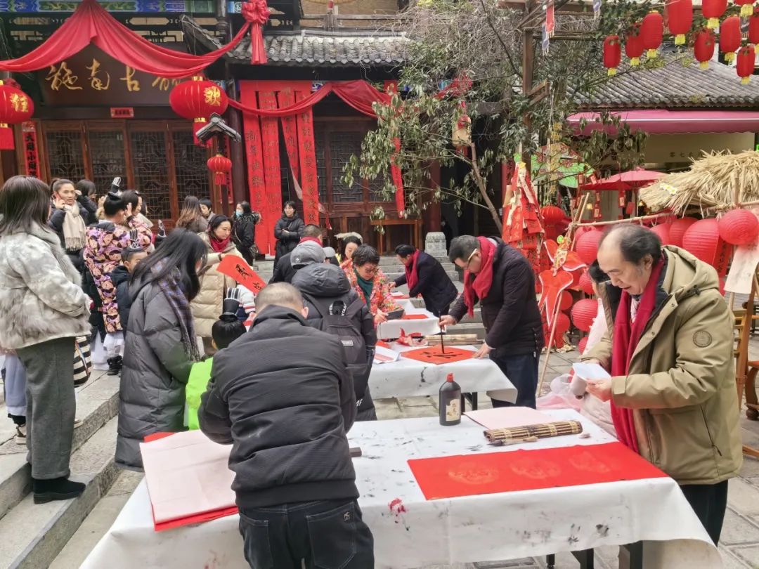 “辰龍送瑞,春聯(lián)送福”。在女兒城非遺劇場門口,免費(fèi)送春聯(lián)活動準(zhǔn)時開始。翰墨飄香迎新春,筆墨濃情送祝福,書法老師們揮毫潑墨、凝神動筆,市民朋友圍成環(huán)裝認(rèn)真觀賞,一時間紅紙翻飛墨香四溢,一副副充滿吉祥如意祝福的手寫春聯(lián)呈現(xiàn)在人們眼前。