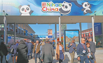 會展中心外側(cè)主通道的顯著位置,印有“你好!中國”國家旅游形象圖案的廣告牌。本報記者 許海林?jǐn)z