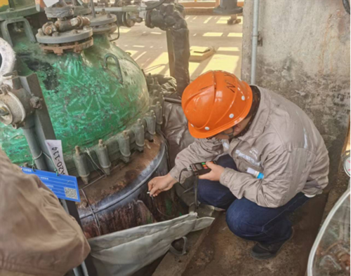 檢驗過程中,檢驗人員與企業(yè)積極交流溝通,發(fā)現(xiàn)問題及時提出、及時指導(dǎo)、及時整改。據(jù)了解,此次檢驗中,有兩臺設(shè)備經(jīng)無損檢測檢測發(fā)現(xiàn)細(xì)小的裂紋,檢驗人員立即與企業(yè)溝通交流,幫助企業(yè)整改,及時打磨后復(fù)檢消除,防止裂紋缺陷進一步擴展,避免因裂紋擴展可能導(dǎo)致的設(shè)備失效和事故的發(fā)生。
