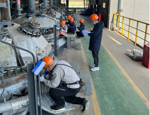 在檢驗現(xiàn)場,檢驗專班合理分工,分成3個檢驗小組,各司其責(zé)、認(rèn)真細(xì)致、高效配合,嚴(yán)格按照相關(guān)規(guī)程,對特種設(shè)備開展了本體及運行狀況檢驗、安全附件檢驗、壁厚測定、無損檢測、搪玻璃層專項檢查等全方位的檢驗工作。