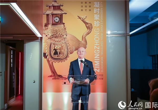 中國(guó)駐英國(guó)大使鄭澤光出席開(kāi)幕式,他在致辭中說(shuō),此次英國(guó)科學(xué)博物館和故宮博物院的合作正是踐行全球文明倡議的生動(dòng)實(shí)踐。今天我們看到的23件來(lái)自故宮的珍貴鐘表,本身就是東西方科技和藝術(shù)交流的結(jié)晶。