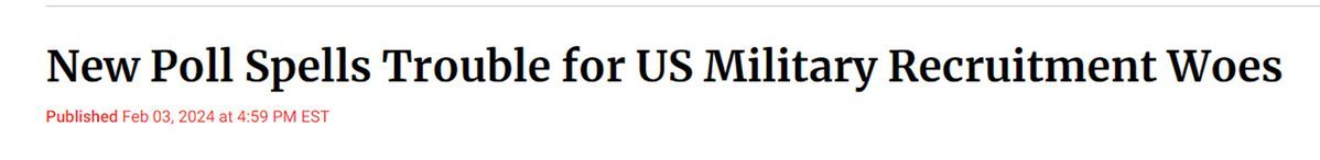 民調(diào)的出爐恰逢美軍連續(xù)幾年遭遇征兵危機。