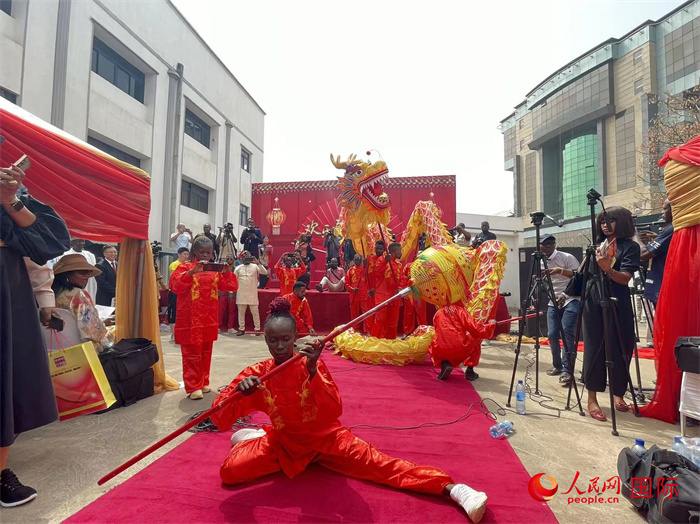 尼日利亞學生表演舞龍。人民網(wǎng)記者 姜宣攝