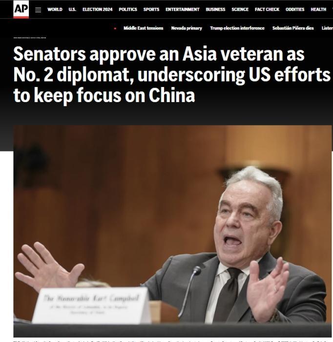 報道稱,參議院批準坎貝爾擔任常務副國務卿,反映了中美關系對美國的重要性增強。