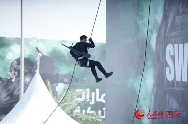 中國(guó)特警索降。人民網(wǎng) 塔里克·易卜拉欣攝