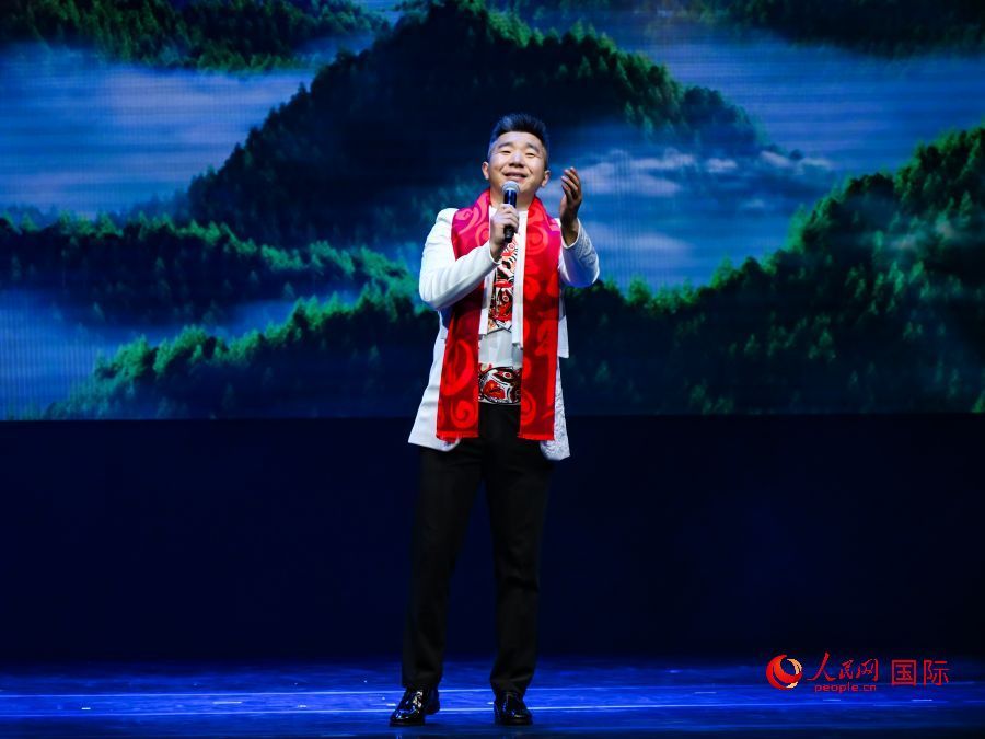 | 中國僑聯(lián)“四海同春”藝術(shù)團團長郭啟華致辭。人民網(wǎng) 郭錦標攝 |